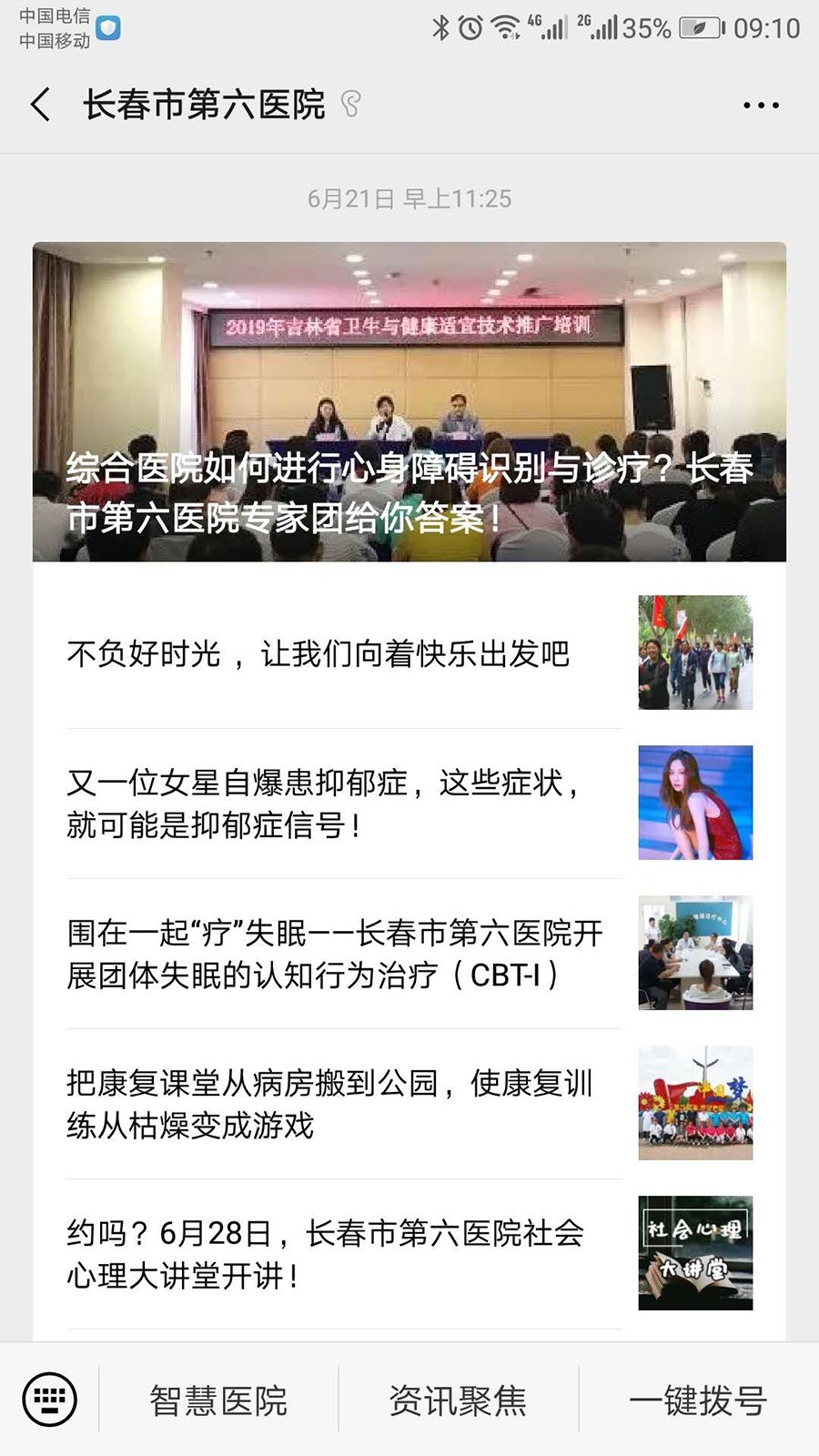 1、进入医院微信公众号点击“智慧医院”进入预约挂号