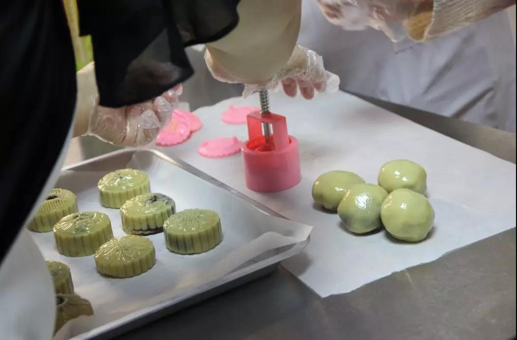 烤制月饼,大家都很感兴趣,为了这次活动,社工们做了不少准备,面、馅、烤箱、模具一应俱全,烹饪训练室里,大家把和好的面和馅包在一起,放进模具,互相配合,再小心地放进烤箱,有的康复学员说,这已经是第三次做月饼了。