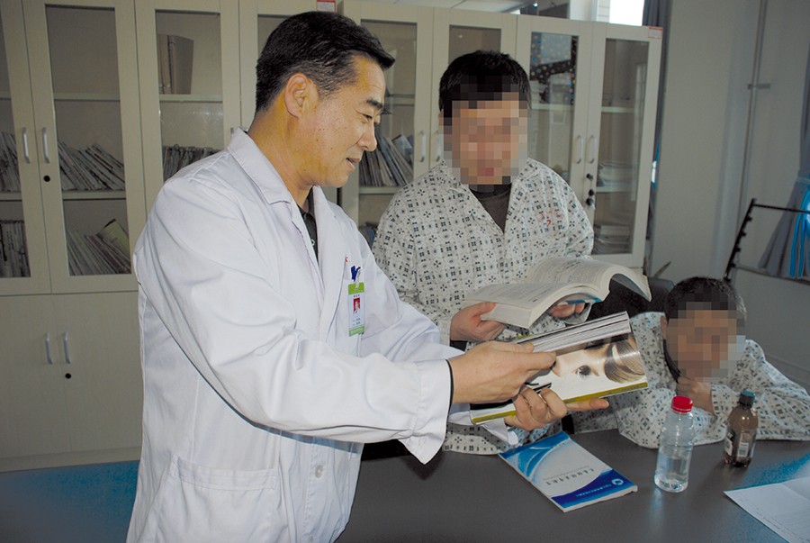▲拍摄于2015年5月,在康复科与患者进行康复训练