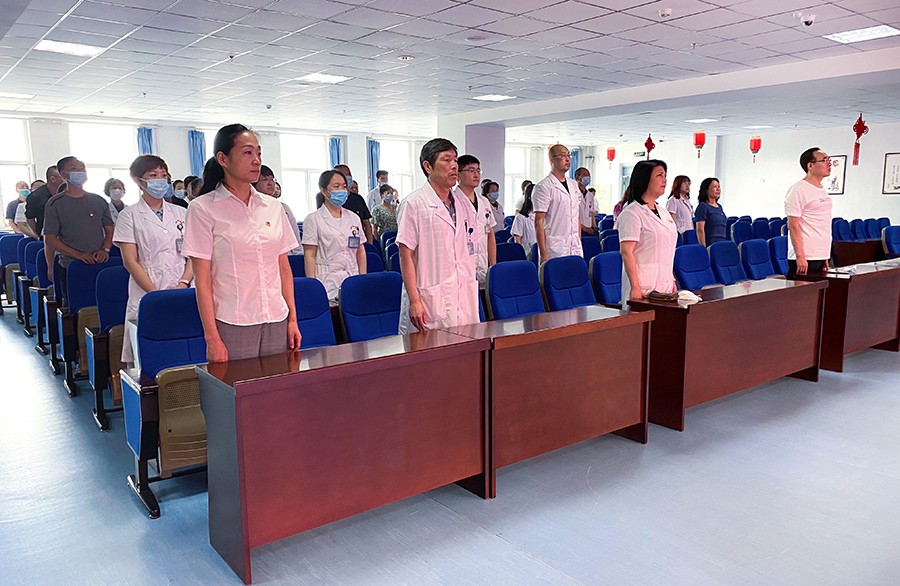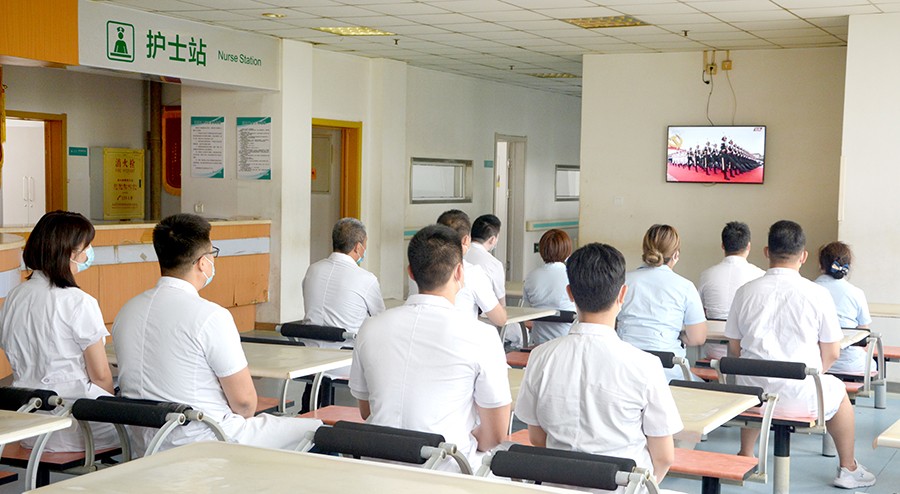 医院利用五楼多功能厅,组织机关党支部、后勤党支部、医技党支部党员、干部集中收看了习近平总书记重要讲话现场直播。党龄72年的离退休支部老党员郭永祥同志在家收看庆祝中国共产党100周年大会。医疗党支部、心理党支部的党员利用疗区公共活动场所收听收看了庆祝大会现场直播。通过观看直播,党员干部们深受洗礼,大家纷纷表示,要牢记初心使命,立足岗位,主动担当尽职,以优异成绩庆祝中国共产党成立100周年。