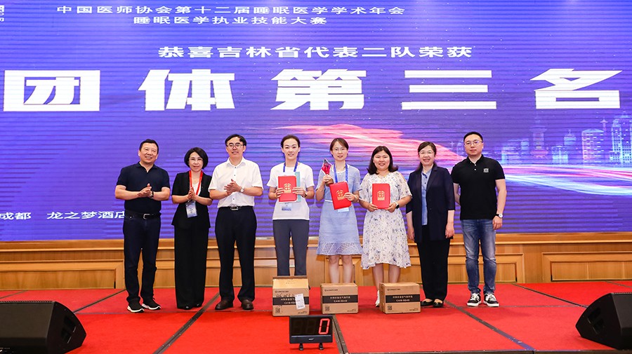 7月16日,由中国医师协会、中国医师协会睡眠医学专业委员会主办的第十二届睡眠医学学术年会睡眠医学执业技能大赛圆满收官。本次大赛围绕“规范与创新并举 开创我国睡眠医学发展新局面”主题,吸引了来自陕西、吉林、江苏、湖北、湖南、广西、云南、山东、安徽、广西、广东、甘肃、重庆、山西、新疆共15个省级行政区的20支睡眠医学专业队伍参赛。经过睡眠分图、抢答、对决等激烈角逐,黄瓜视频 睡眠障碍诊疗中心赵丽丽和杨金玉两位医生所在的吉林省第二代表队凭借扎实的理论知识、丰富的临床经验和精准的判断力,成功入围决赛,并最终获得团体第三名的好成绩。