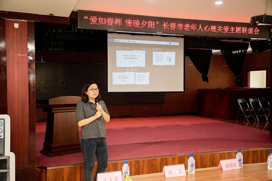 刘莉副处长对九圣祠社区荣获全国首批示范性老年友好型社区表示祝贺,向一直以来关心和支持老龄事业,关注老年健康的社会各界爱心人士表示感谢。她指出:为了落实党中央、国务院的决策部署,聚焦长春市189万老年人的“急难愁盼”,市老龄办、市卫健委决定依托我市优质资源,积极打造具有长春特色的“精准科普、精准监测、精准干预、精准服务”的老年人心理健康服务模式,建立“政府主导、部门协同、社会参与、人人行动”的涵盖社区、银行、院校、养老机构等领域的多元多维的老年人心理关爱联盟。她表示:通过活动加深对老年人心理健康状况的了解,找准老年人精神生活具体需求,动员各方力量,积累宝贵经验,为筑牢老年人的心理健康防线,贡献“长春智慧”。
