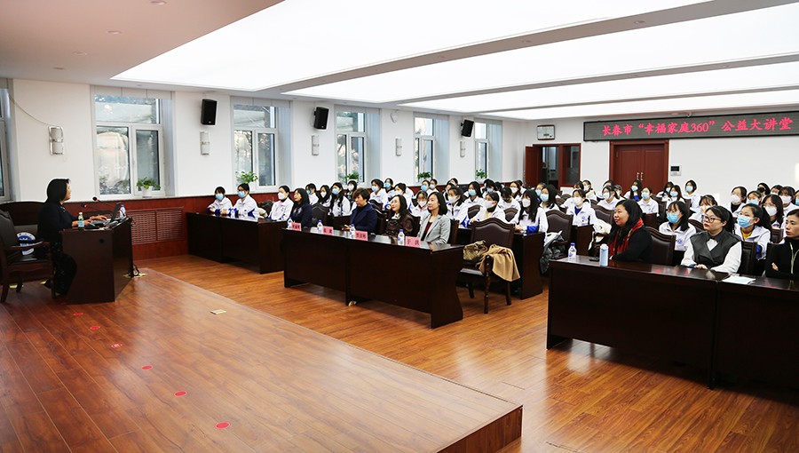 为弘扬优良家教家风,助推社会主义核心价值观在家庭落地生根,长春市妇联自2019年创新实施“幸福家庭360”公益大讲堂项目,以建设好家庭、涵养好家教、传承好家风为宗旨,采取“空中+网络+线下”形式,走进党政机关、企业、高校、乡镇街道、社区村屯,开展专家讲座与公益活动,已形成“妇联牵头、社会化参与、专业化服务、妇女儿童和家庭受益”的工作模式。12月17日,由长春理工大学妇女委员会主办、经济管理学院妇委会承办的“长春市妇联幸福家庭360公益大讲堂——女性心理健康知识讲座”如期举行。校妇委会主任贾彦彬、副主任杜丽明,经济管理学院院长张肃、副院长于洪及学院80余名女教师和女大学生代表参加活动。长春市六医院党委书记、院长桑红受邀为大家进行专题讲座。