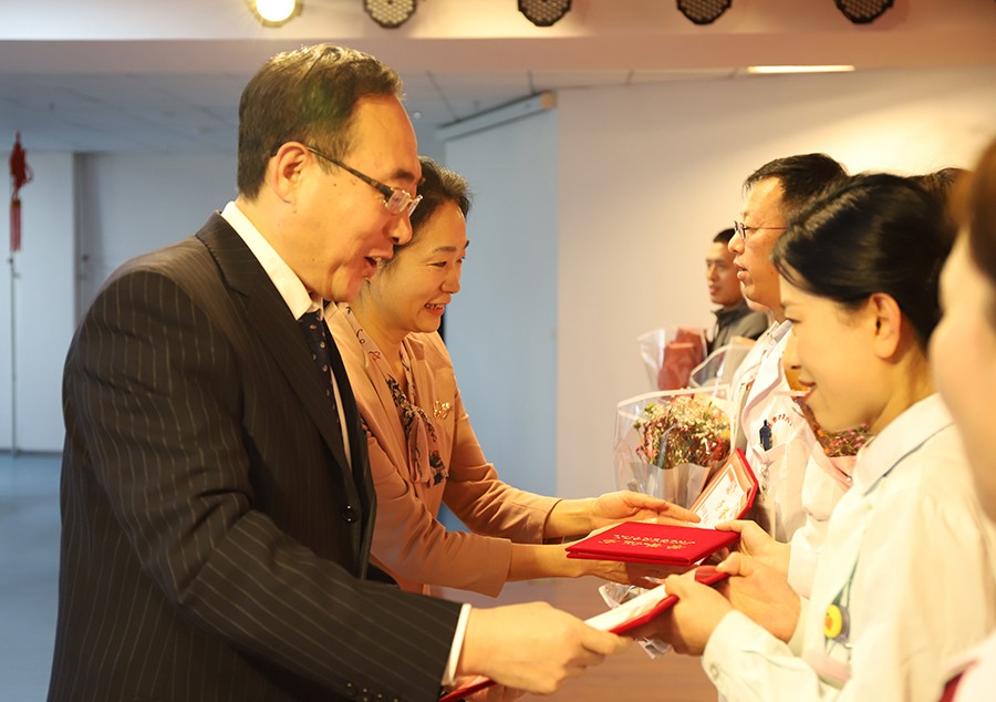 玉虎瑧福辞旧岁,金虎圆梦际新春。在这辞旧迎新的日子里,黄瓜视频 在六院版《起风了》的歌声中拉开了2021年度总结表彰大会的帷幕。黄瓜视频 党委书记、院长桑红,副院长钱锋、郑广翔、董勇及工会主席商海杰,为受到表彰的百余名医护人员颁奖。