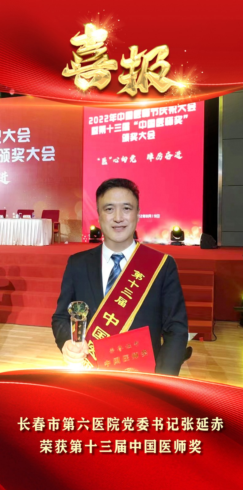 从第十三届中国医师奖颁奖大会上传来喜讯,我院党委书记张延赤荣获第十三届“中国医师奖”殊荣!