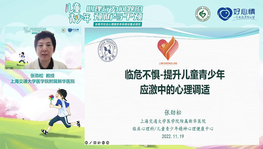 ▲上海交通大学医学院附属新华医院临床心理科主任张劲松教授讲授了 “临危不惧—提升儿童青少年应激中的心理调适”相关内容。