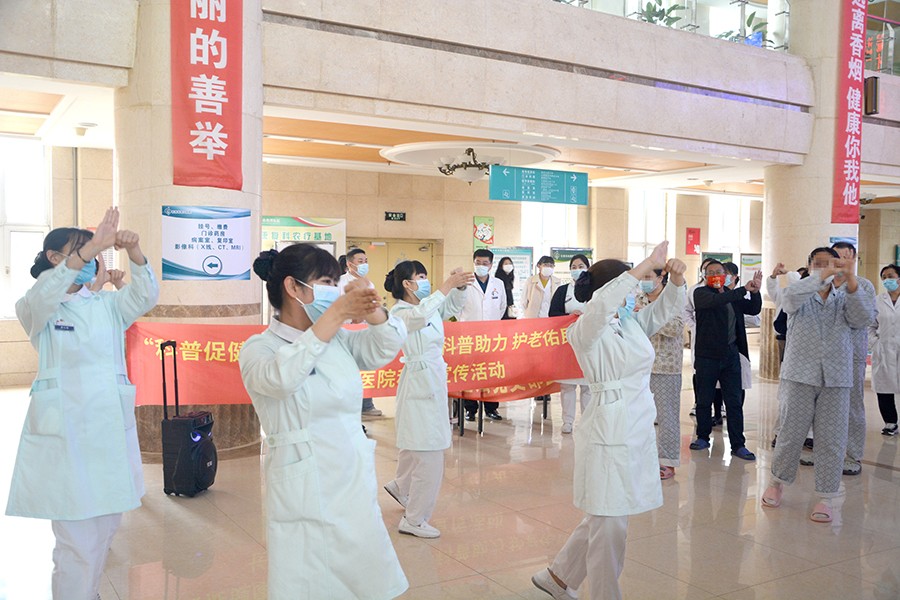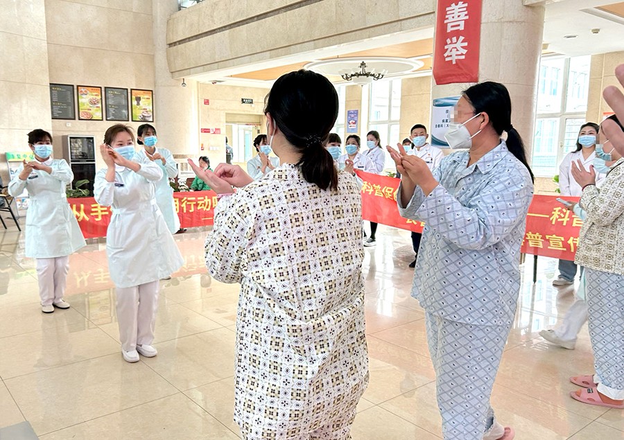随后,护士们与患者、家属一起跳了一段自编的洗手舞。大家在欢快轻松的氛围中纷纷模仿练习,将七步洗手法牢牢记在了心中,通过形式活泼、寓教于乐的活动,让大家自觉履行手卫生,保障自身生命健康安全。