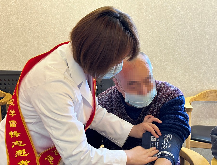 随后,张晶耐心细致地为前来咨询的患者及家属答疑解惑和提供康复指导,还为现场居民测量了血压、血糖、血氧等,并耐心叮嘱他们注意饮食结构,普及高血压起床“三部曲”。
