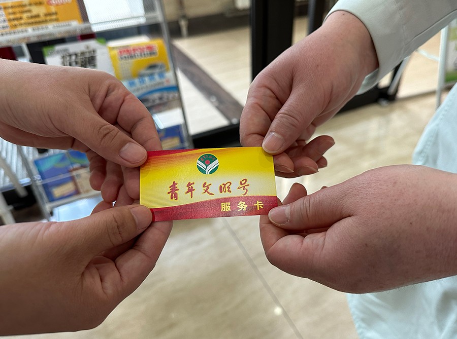 活动接近尾声时,一位大姐提出了疑问:“你们讲得挺好,也正是我们需要的,可是现在知道了,回家就忘了怎么办?”刘学急忙解释说:“别着急大姐,我们还专门带来了健康宣教手册,您需要的这里面都有,我们还为大家带来了青年文明号服务卡,卡片上有我们抑郁障碍诊疗中心的电话,您有问题随时可以拨打电话咨询。”大姐接过志愿者递过来的卡片,脸上露出了满意的笑容。