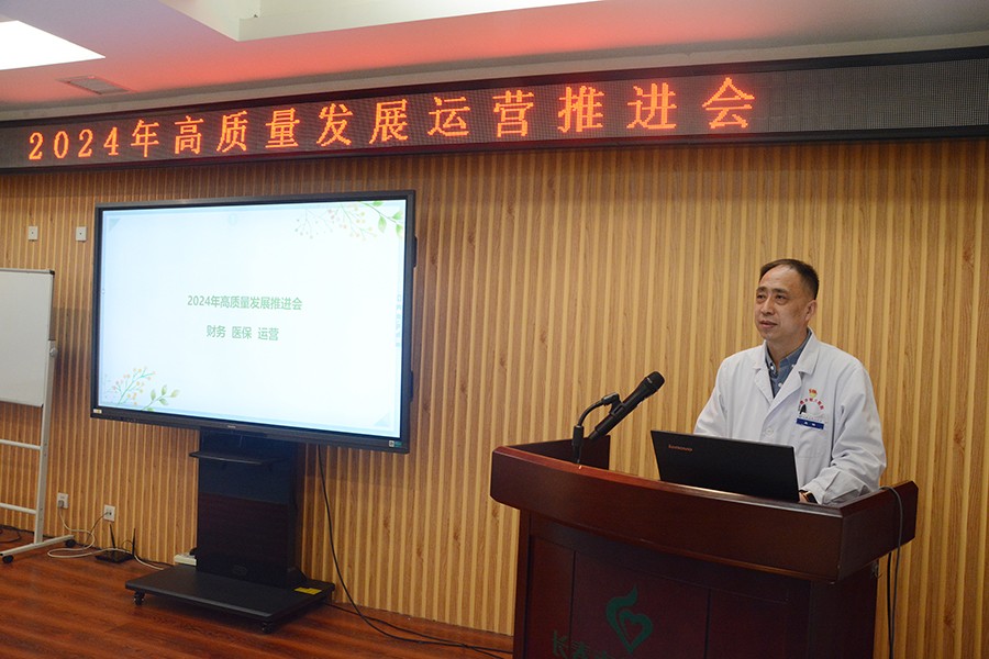 会议最后,张延赤书记结合当前医院发展现状、国家的健康战略需求,以及新时代大健康内涵,与大家探讨了医院高质量发展的重要意义。他强调,2024年医院要围绕精细化管理,以国家三级公立医院绩效考核为指挥棒,建设医疗质量好、运行效率高、可持续发展和医患满意的公立医院;要向临床要增量、找运营要效率,推进绩效分配方式转变;要以“国考”为鞭策,从“求稳”转向“求变”,推动管理向精细化转变,责权利向更明晰转变;要加强科室协作,充分整合科室间优势资源,实现联合共同发展;要全方位培养好、引进好、配备好人才,完善人才培养体系,建设想干事、能干事、干好事的干部队伍;要审时度势、创新思路、规划战略,奋力推进医院不断实现新跨越、新发展。