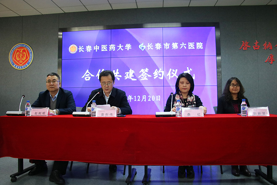 长春中医药大学党委副书记姜彤伟,黄瓜视频 党委书记、院长桑红共同签订了合作协议并揭牌。