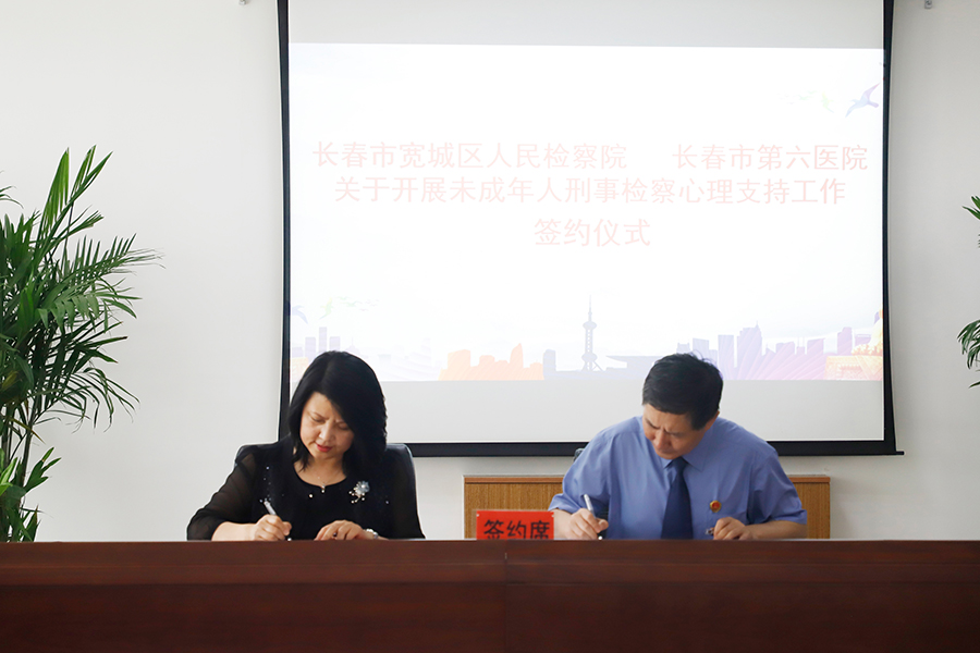 长春市宽城区人民检察院党组书记、检察长卢炬与黄瓜视频 桑红院长签署《关于开展未成年人刑事检察心理支持工作的合作协议》。