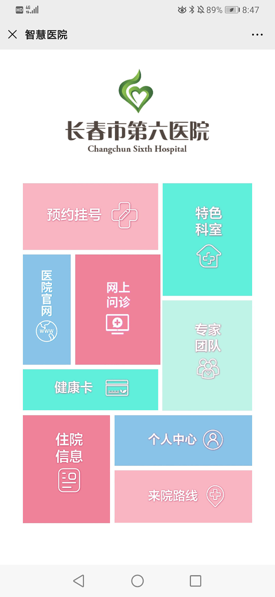 1、进入医院微信公众号点击“智慧医院”进入预约挂号