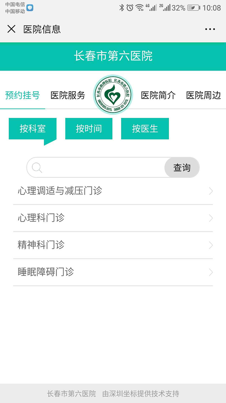 2、按科室、按时间、按医生或搜索选择信息进行预约挂号