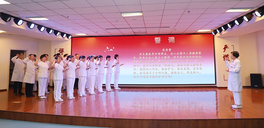 “我宣誓,我自愿献身护理事业,全心全意为人类健康服务……”护理部主任孙兰英带领全体护士重温中国护士宣誓誓词,活动在庄严的宣誓声中拉开序幕。