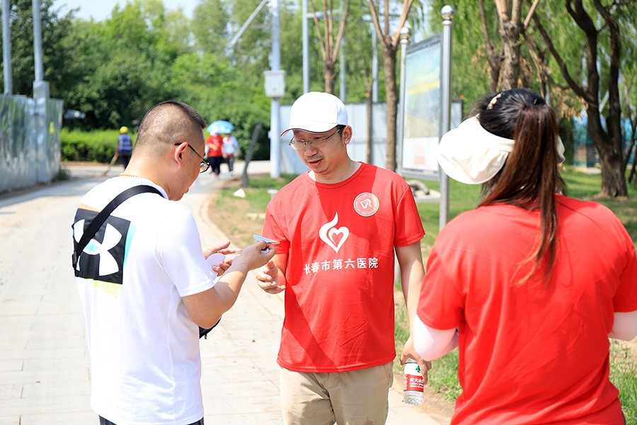 “预备,开始!”随着张延赤书记一声令下,活动正式开始。徒步队伍在院旗的引领下就如长龙一般蜿蜒前行。“同志们,别掉队啊,坚持一下,胜利就在前方”。烈日当空,院领导边走边为大家打气。受到鼓舞后,党员们又迈开步伐,向着终点奋勇前行。尽管大家挥汗如雨,但没有一人掉队。这正彰显了六院人凝心聚力、不怕困难、勇往直前的精神风貌。