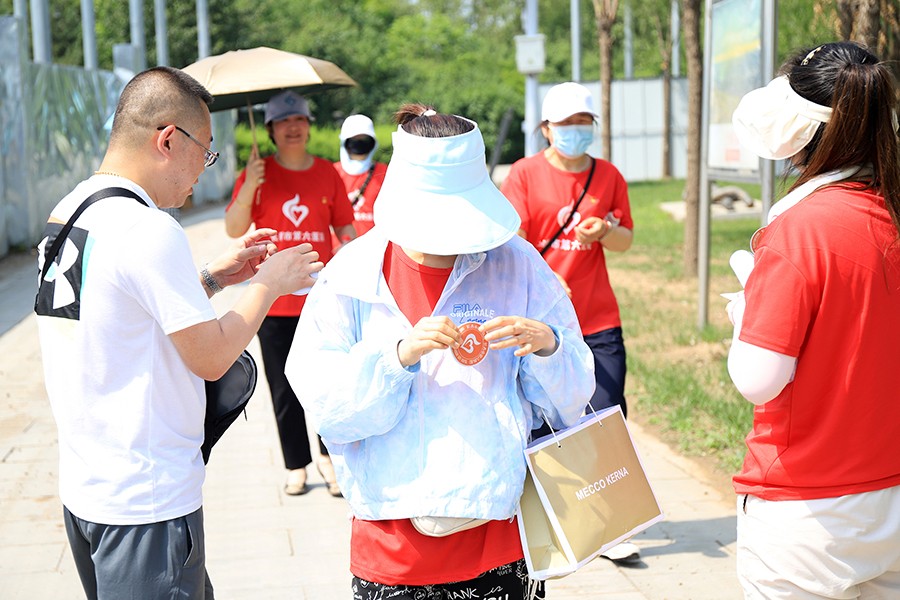 此次主题党日活动,医院工作人员做足了充分准备,事先在徒步路线上设置三处关卡,党员们每经过一处需领取党建知识答题卡,答案正确便可闯关成功,换取印有院徽的胸贴。三处关卡全部完成者,在到达终点时,可领取名次牌,并凭名次牌领取奖品。