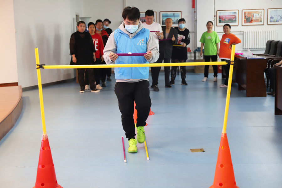 现场,来自长春市4个社区的20名“同伴成员”,在家属和辅导员的带领下,共同参与活动。整个活动环节穿插了知识问答、团队游戏、配乐诗朗诵、大合唱等多个项目,过程中“同伴成员”积极参与,他们在嬉闹声中协同合作,既锻炼了身体协调能力,又提升了自信心,使他们感受来自社会各界的关爱。