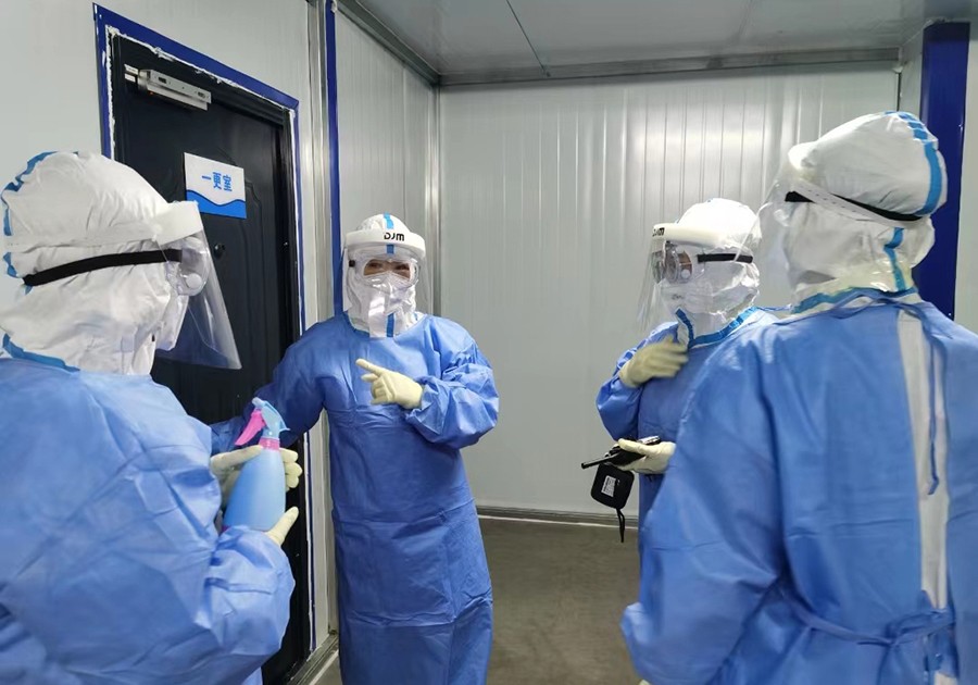 “郭姐您先歇会”这些天同事对郭桂英说过最多的话可能就是这句。今年58岁的她和大家一样,不管任务多艰巨,都不退缩。她说:“作为感控科的护士,这就是我的职责。”
