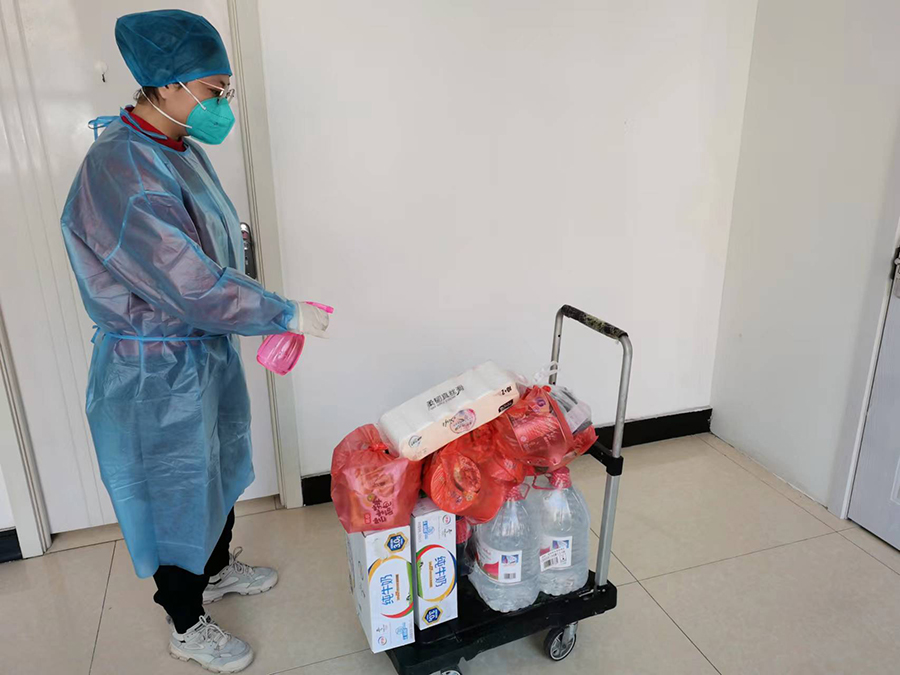 4月27日,尹美娇按照要求返回医院,负责过渡病房的相关工作。那段时间,她成为患者与家属的“桥梁”。她每天都要把患者家属送来的换洗衣服、食物、生活用品精准送到对应的患者身边。这种有效的衔接,让住院的患者衣食有保障,心里暖融融。