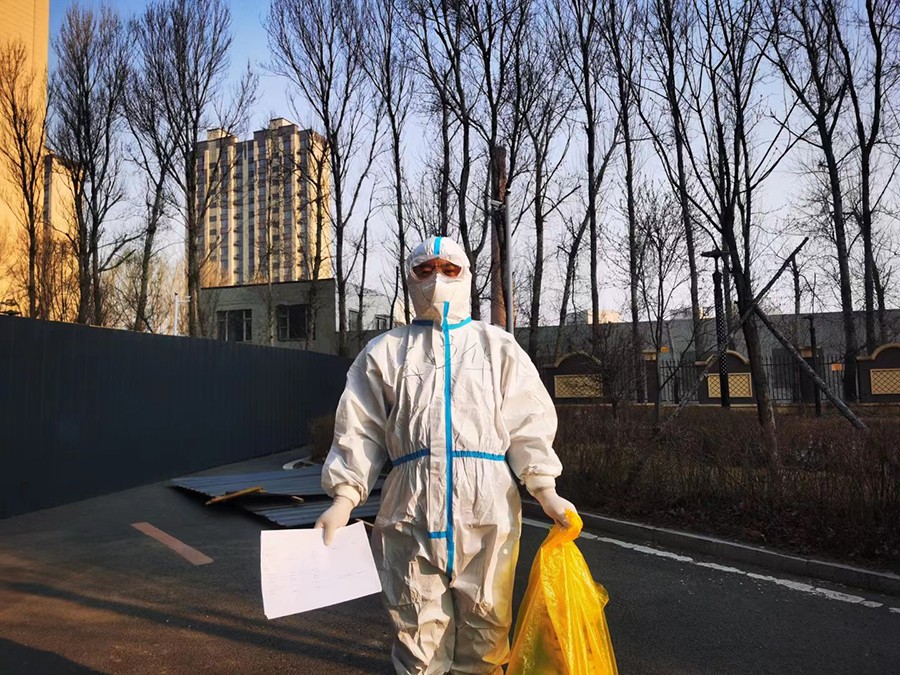 ▲保卫科的党员王海波在抗疫行动中身先士卒,始终战斗在抗疫一线