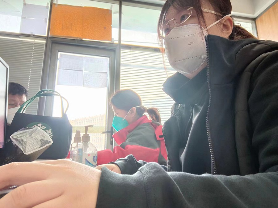 ▲核算科的党员闫竞文在方舱医院住院处支援