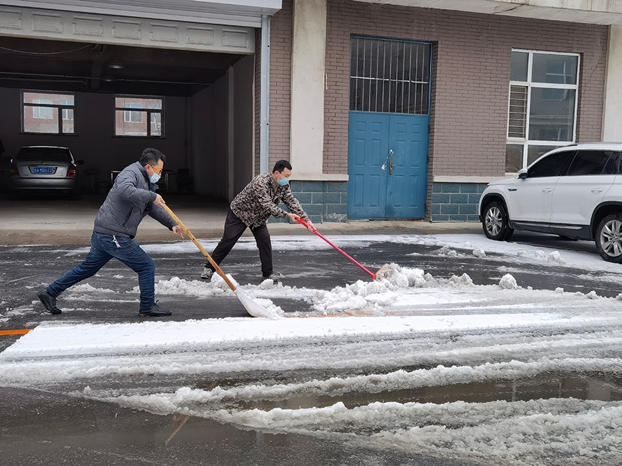 ▲总务科的党员们在清理院内地面上的积雪