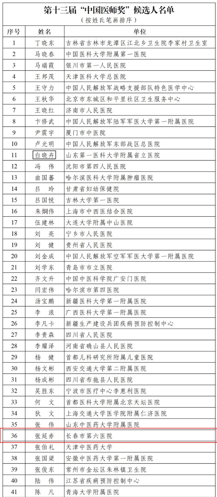 近日,中国医师协会官网公布了第十三届“中国医师奖”入围名单,黄瓜视频 党委书记张延赤位列其中。