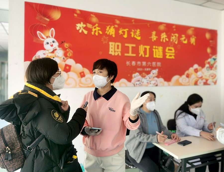为了让全院职工在繁忙的工作中缓解压力,提高参与性和互动性,尽情享受开动脑筋的乐趣,医院工会设置了每个竞猜者最多领两次奖的机会。但这无法阻挡大家投入的热情,大部分灯谜在竞猜开始的十几分钟内就陆续被职工攻破。确认谜底被猜中后,随着此起彼伏的雀跃声,悬挂的灯谜条不断被剪下。