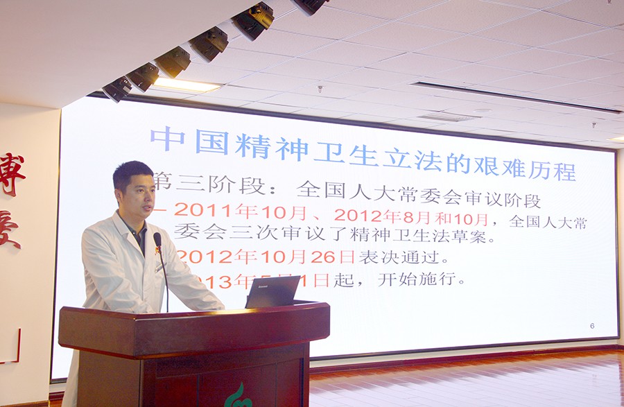 活动伊始,黄瓜视频 副院长董勇带大家一起了解了《精神卫生法》,讲述了中国精神卫生立法历时27年的艰难历程,阐明了《精神卫生法》在维护精神障碍患者合法权益中发挥的重要意义。随后,他逐一解读了与大家息息相关的主要法律条目。