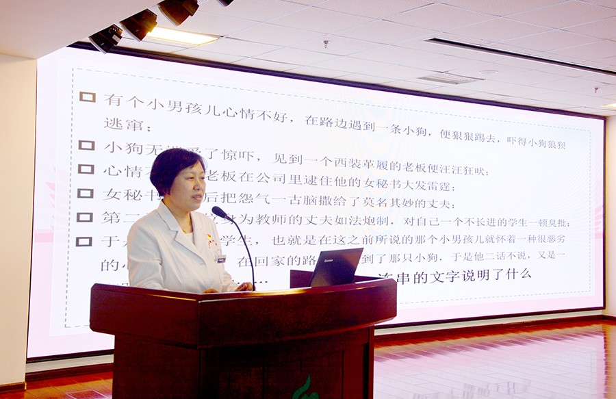 在《情绪的管理》课程中,护理部主任孙兰英以通俗易懂的方式,绘声绘色地为大家讲解了在人际交往中如何正确表达情绪及调节情绪的方法,并带领大家现场分组讨论和课后的随堂练习。大家踊跃举手,积极发表意见,将活动推向高潮。