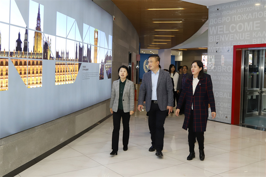 专题讲座结束后,张延赤书记一行在苗晶副书记的引领下,参观了学校图书馆内的团体辅导室、心理咨询室和世界多元文化教育中心 (“地球村”)。