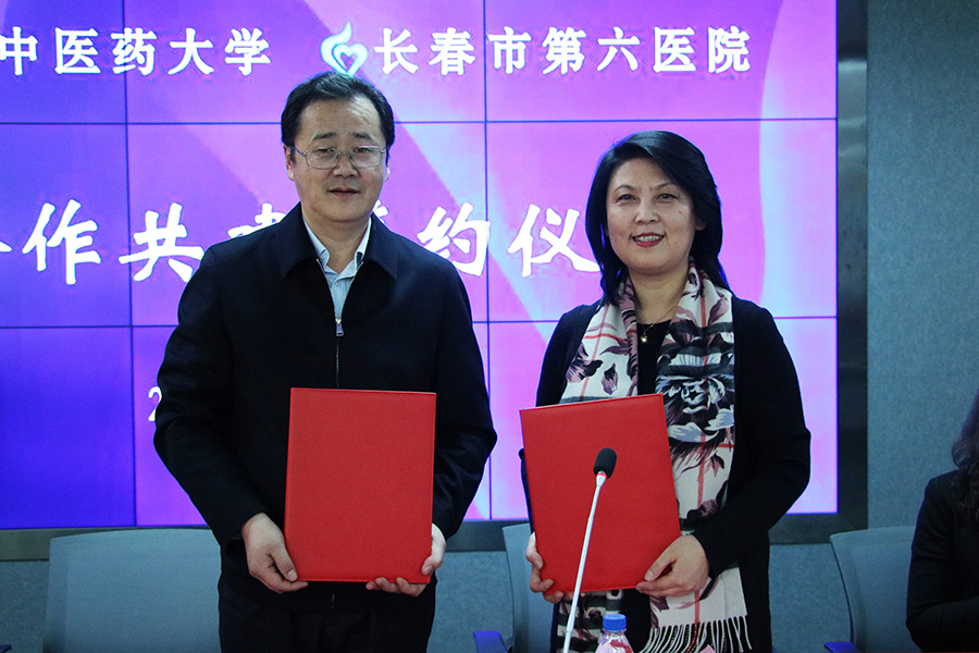 长春中医药大学党委副书记姜彤伟,黄瓜视频 党委书记、院长桑红共同签订了合作协议并揭牌。