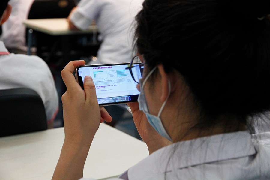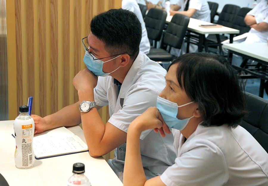 在现场,参会医护人员认真做着笔记,同时还与李凌江教授进行了连线交流。通过这次学习,让大家对焦虑障碍临床研究现状有了进一步的了解,受益匪浅。