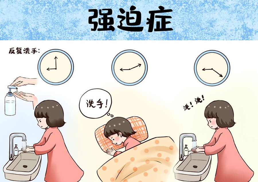 ◆强迫行为:患者会有重复的行为或者心理活动出现,经常做一些没有必要的行为,如反复检查、反复洗手、反复计数以及仪式性动作等。